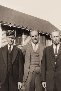 The stories that came down to me about a man who died five years before I was born suggested also that he was a little weird in the sense of ‘out of the ordinary course’. My father knew him pretty well. As a child before the family moved to the Bronx, one of Dad’s chores was to deliver lunch to James at his mechanic’s job in Pawtucket. In the huge machine shop yard, he heard James’ well-turned phrases — ‘I’m foundered’ meant he was freezing cold, ‘a bird never flew on one wing’ suggested a second helping was in order, an elaborate Catholic mass would be described as ‘Romish’.